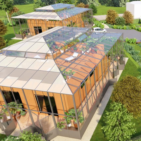 Nous avons développé, en collaboration avec l'agence Rève Architecture, un concept de maison bio-climatique modulable sous serre, faisant appel à de nombreux matériaux bio-sourcés et à des sytèmes et équipements éco-conçus.